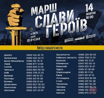 "Национальный Корпус", "Правый Сектор" и ВО "Свобода" призывают 14 октября выйти на ежегодный марш. Шествие в этом году будет называться "Марш Славы Героев".