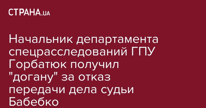 Дисциплинарное производство в отношении Горбатюка началось по заявлению заместителя генпрокурора Юрия Столярчука. Причиной жалобы был отказ Горбатюка отдать дело председателя апелляционного суда Черкасской области Бабенко, которому следователь Горбатюк собирался вручать подозрение.