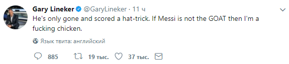 "Там, где Месси – есть надежда. Он просто вышел и оформил хет-трик. Если он не лучший в истории, то я чертова курица", - написал Линекер.