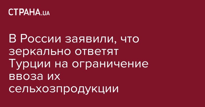 В России заявили, что зеркально ответят Турции на ограничение ввоза их сельхозпродукции