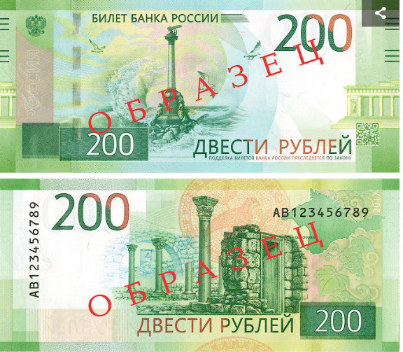 В частности, на купюре в 200 рублей изображены развалины Херсонеса и памятник морякам в Севастополе.