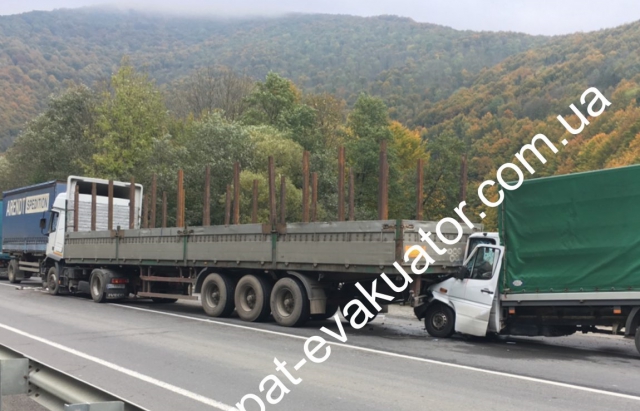 На трассе Киев-Чоп столкнулись Man, Iveco и Mercedes, а виновник ДТП скрылся на Audi. Фото