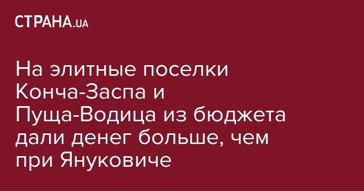 В этом году на содержание элитных коттеджных поселков "Конча-Заспа" и "Пуща-Водица" по бюджетной статье "Финансовая поддержка санаторно-курортных заведений" будет выделено 50,1 миллиона гривен, что почти на 10 миллионов больше, чем в 2015 году.