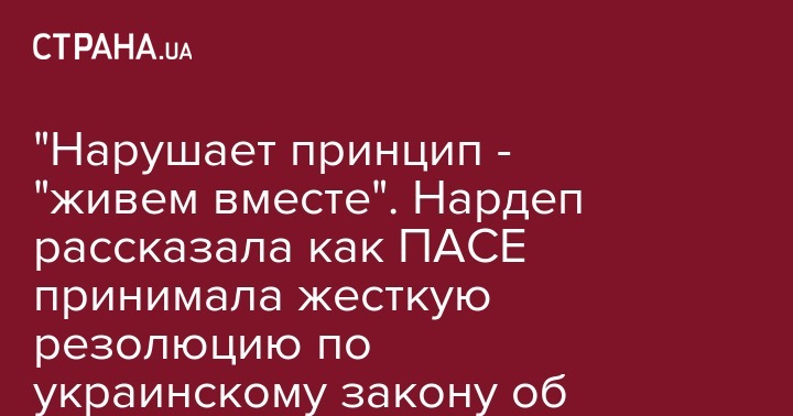 "Ассамблея отметила серьезную обеспокоенность в отношении ряда правовых вопросов, заявив, что важным является выполнение обязательств, предусмотренных Европейской конвенцией о защите прав человека и основных свобод, Европейской хартией региональных языков и Рамочной конвенцией о защите прав национальных меньшинств. Очень важно помочь восстановить конструктивный диалог между различными заинтересованными сторонами", - подчеркнула народный депутат.