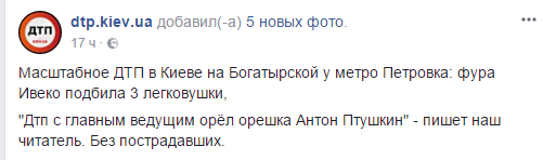 Об этом сообщил аккаунт dtp.kiev.ua  в Facebook.