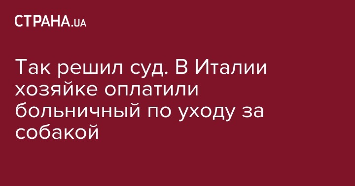 В Италии женщина выиграла судебное дело за право получить оплачиваемый больничный, чтобы ухаживать за своей больной собакой. В суде женщине, которая является академиком Римского университета Ла Сапьенца, помогали юристы организации LAV, защищающей животных, передает ВВС.