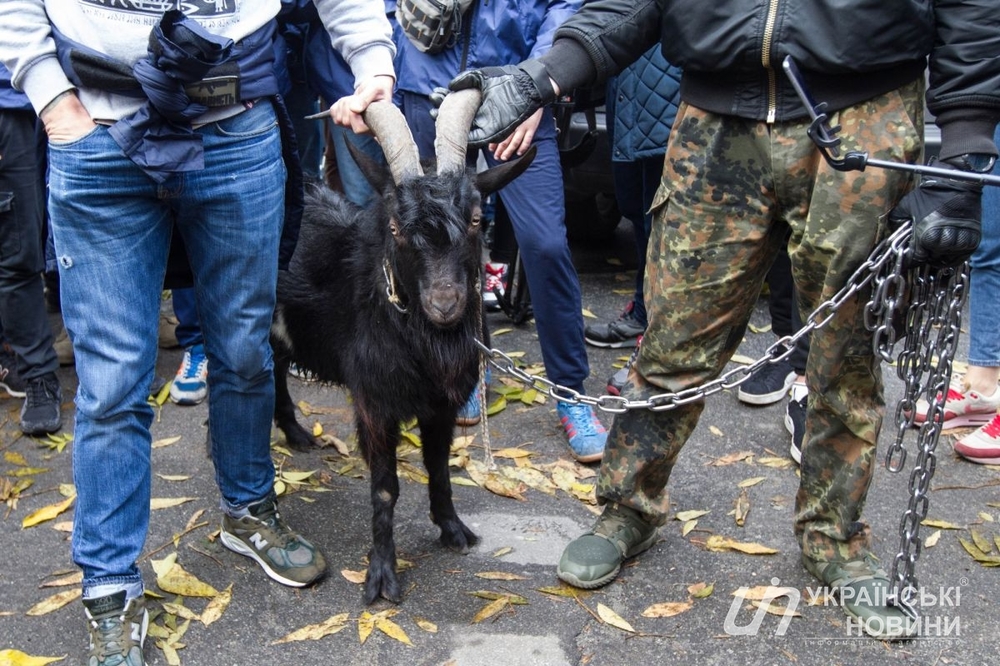 Националисты привели к посольству Чехии в Киеве козла, которого назвали Милош Земан