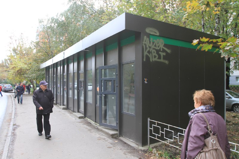 На месте снесенных ларьков возле станции метро "КПИ" появились МАФы нового образца. Теперь такие будут появляться по всему городу.