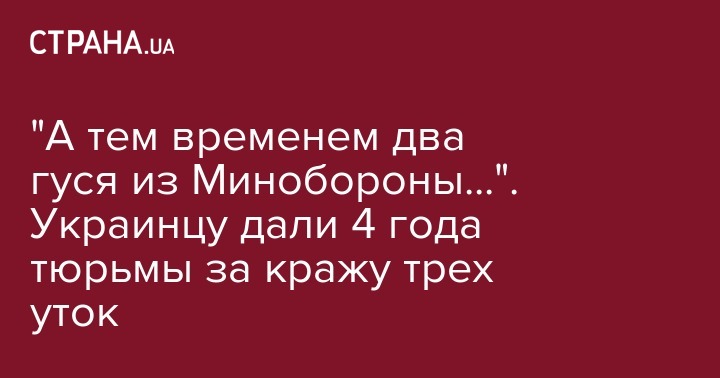 В Запорожской области к 4 годам тюрьмы приговорили мужчину, который украл 3 уток на сумму 675 гривен. Об этом сообщил в Facebook адвокат Андрей Смирнов.