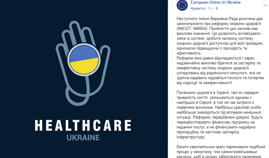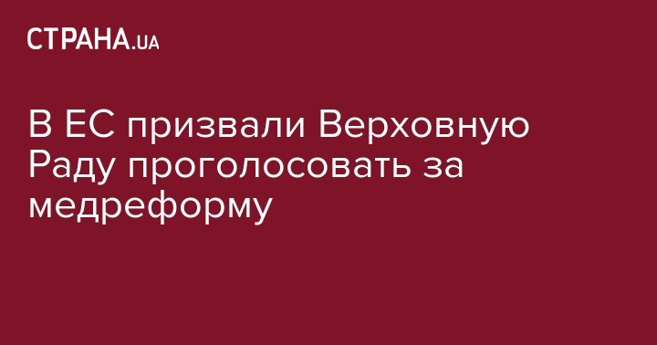 Представительство ЕС в Украине призвало Верховную Раду проголосовать за законы по медреформе, которые будут рассматривать на следующей неделе. Об этом пресс-служба представительства сообщает в Facebook.