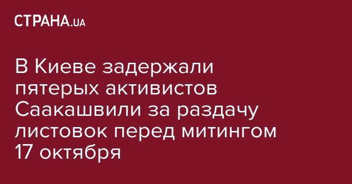 В Киеве задержали 5 участников "Руха новых сил" Михаила Саакашвили, которые раздавали листовки с приглашением на оппозиционный митинг 17 октября. Об этом сообщается в Facebook партии, где публикуют видео задержания.