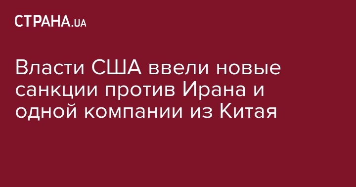 Власти США ввели новые санкции против Ирана и одной компании из Китая