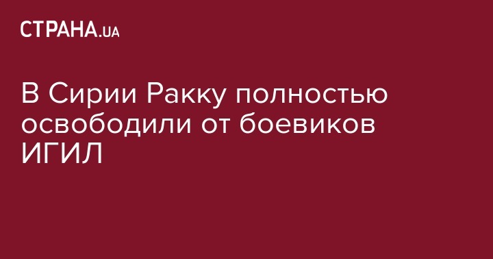 Бывшая столица группировки "Исламское государство" на севере Сирии Ракка освобождена от боевиков ИГИЛ. Об этом сообщает телеканал Al Arabiya.