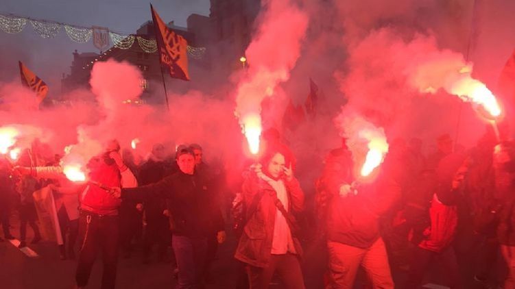 В Киеве завершился "Марш Славы Героев" при участии "Национального корпуса", "Правого сектора" и ВО "Свобода". "Страна" вела онлайн-трансляцию факельного шествия.
