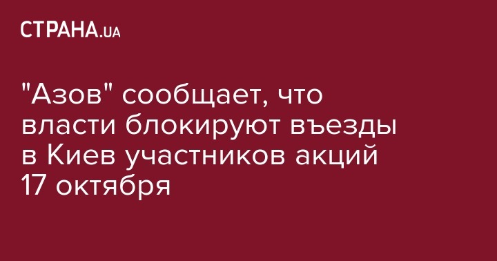 Власти пытаются блокировать въезд в Киев участников акций протеста 17 октября, сообщает сайт "Азова".