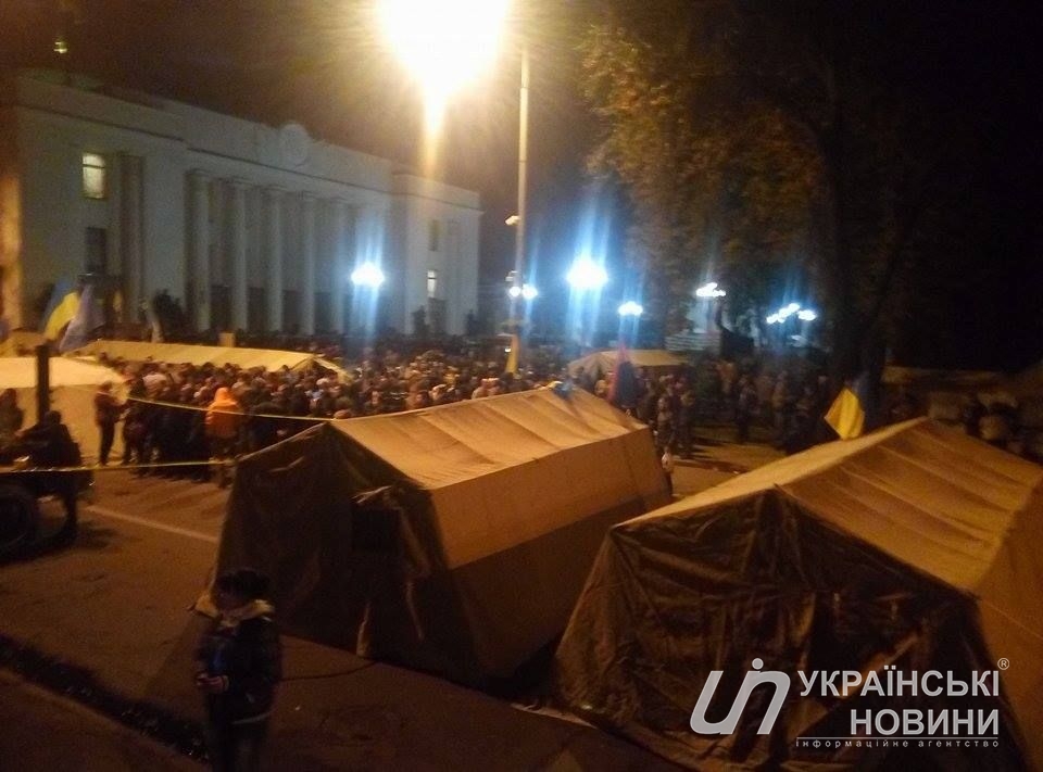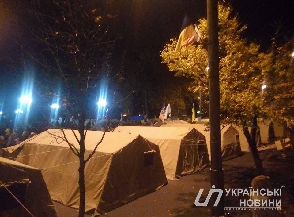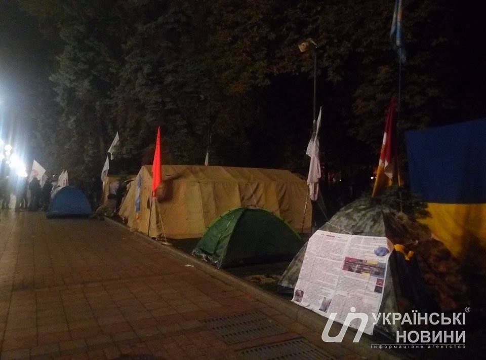 Митингующие установили более 60 палаток возле здания Верховной Рады. Об этом сообщает корреспондент "Страны" с места событий.