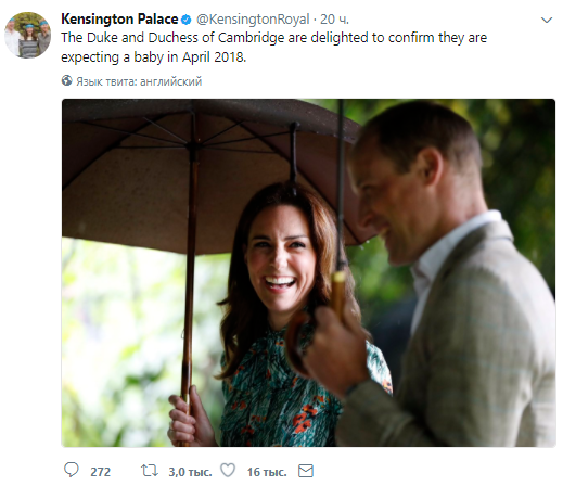 Герцогиня Кембриджская Кейт Миддлтон и принц Уильям сообщили, что их третий ребенок родится в апреле 2018 года. Новость о рождении третьего ребенка, которая успела облететь весь мир, супруги подтвердили в Twitter.