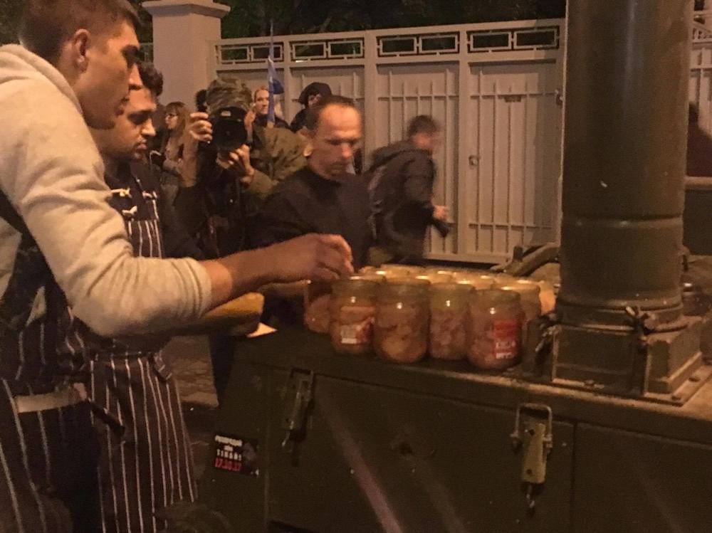В сентябре 2016 года штурмовали телеканал "Интер" после поджога. Активисты правых движений требовали прекратить вещание телеканала и сносили под здание покрышки. По воспоминаниям очевидца, тогда протестующим в пластиковых судках приносили уже готовую солянку и гречку с куриной котлетой.