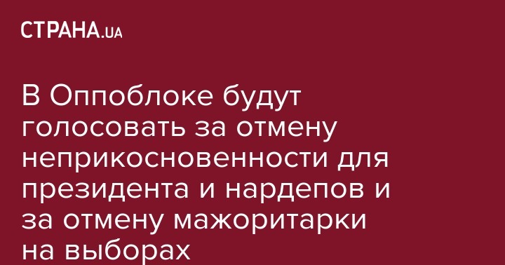 Фракция "Оппозиционного блока" выступает за отмену неприкосновенности президента, судей и народных депутатов, а также готова поддержать проведение выборов на основе пропорциональной системы по открытым спискам.