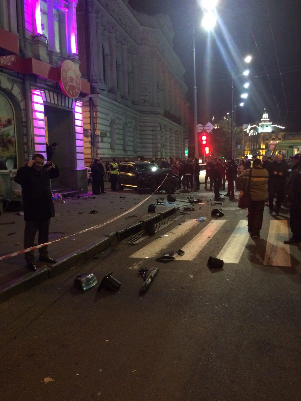 "Шесть трупов в центре Харькова. Еще от 6 до 12 человек пострадали. ДТП в самом начале Сумской, возле Пузатой хаты. Столкнулись Lexus RX 350 и Volkswagen Touareg, после удара Lexus врезался в столб, перевернулся и вылетел на тротуар, где было много пешеходов", - написал в Facebook юрист Алексей Романов.