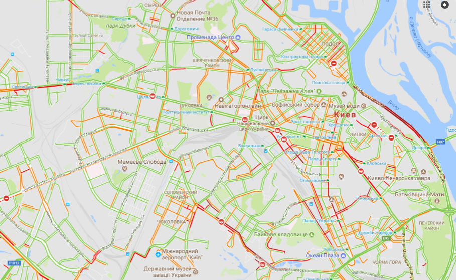 Также наблюдаются заторы на Набережном шоссе, Академгородке, проспекте Лобановского.