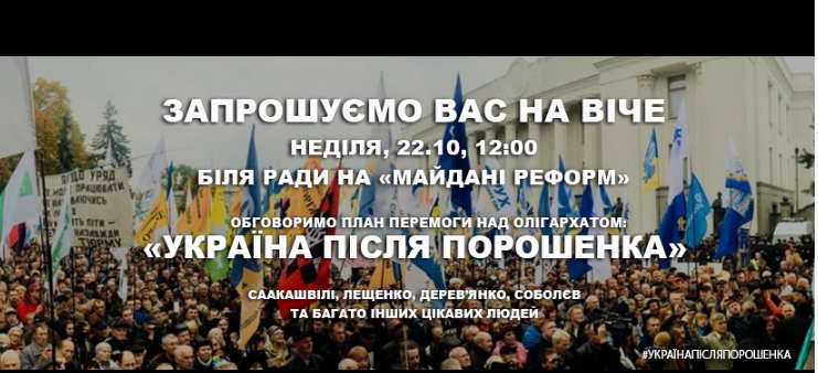 На митинге под названием "Украина против Порошенко" Саакашвили предлагает "обговорить план победы над олигархатом".
