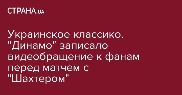 Украинское классико. "Динамо" записало видеобращение к фанам перед матчем с "Шахтером"