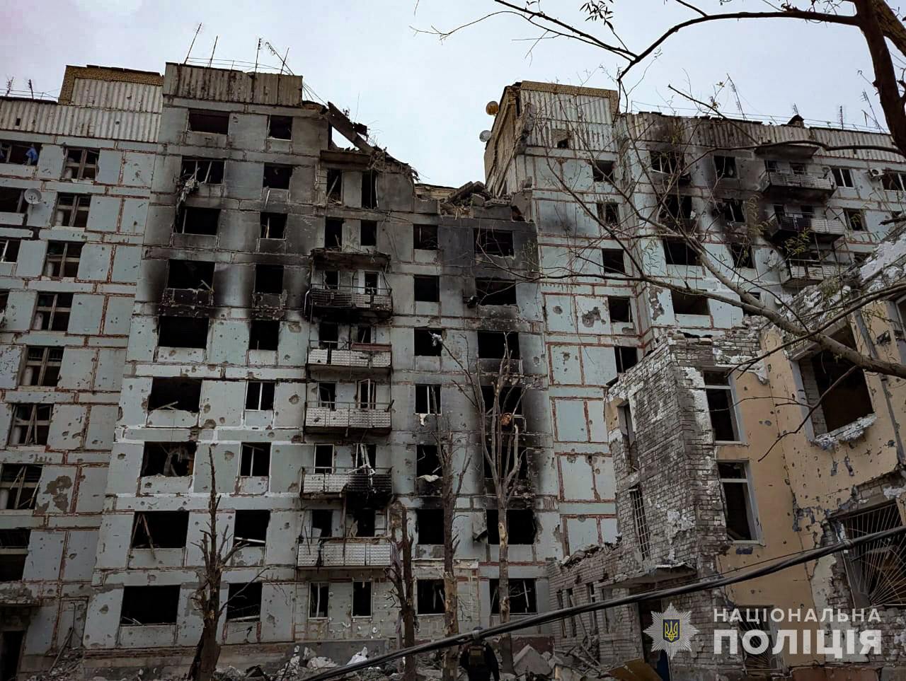 12.54 Многоэтажка в Запорожье, поврежденная вчерашним обстрелом.