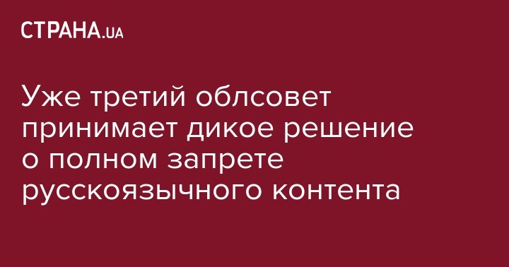 Уже третий областной совет принял совершенно дикое решение о моратории на публичное использование любого (!) русскоязычного культурного продукта. Даже произведённого в Украине. Любого.