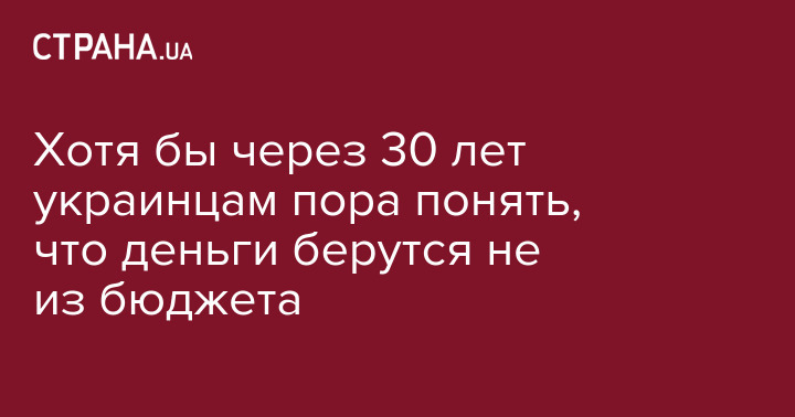 ХОТЯ БЫ ЧЕРЕЗ 30 ЛЕТ УКРАИНЦАМ ПОРА ПОНЯТЬ, ЧТО ДЕНЬГИ БЕРУТСЯ НЕ ИЗ БЮДЖЕТА