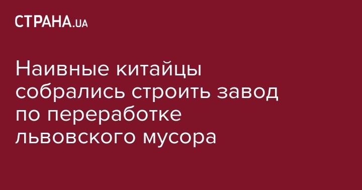 Услышал по радио. Какая-то китайская фирма собралась завод строить во Львовской области по переработке мусора. Электроэнергию хотят производить и бабки на этом зарабатывать. Уже, типа, через полгода. Наивные восточные люди. Привыкли там у себя к бардаку. Да они согласование одного Минкульта полгода получать будут. Если вообще получат. Расскажите им кто-то. Пусть себе губозакаточную машинку купят в Сильпо. Видел на распродаже.