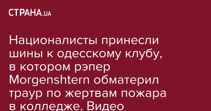 Националисты принесли шины к одесскому клубу, в котором рэпер Morgenshtern обматерил траур по жертвам пожара в колледже. Видео