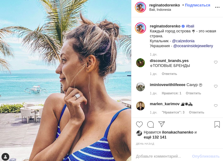 "Каждый город острова - это новая страна", - подписала Регина снимок, сделанный на индонезийском острове Бали.