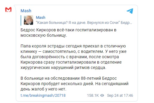 Также уточняется, что жалоб на здоровье у Бедроса Киркорова на сегодняшний день нет и в больнице на обследовании он пробудет несколько дней.