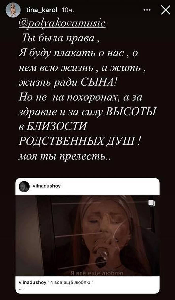 После комментария Поляковой Кароль оставила сообщение у себя в сторис Instagrama, отметив там Олю Полякову.