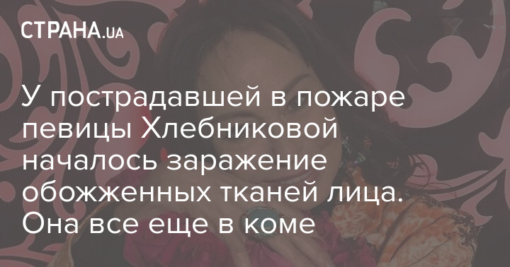 У пострадавшей в пожаре певицы Хлебниковой началось заражение обожженных тканей лица. Она все еще в коме