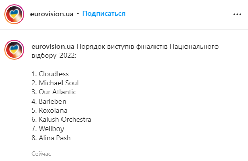 Об этом стало известно из публикации "Евровидение UA Eurovision" в Instagram.