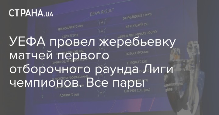УЕФА провел жеребьевку матчей первого отборочного раунда Лиги чемпионов. Все пары