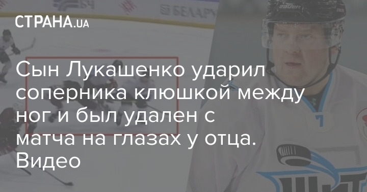 Сын Лукашенко ударил соперника клюшкой между ног и был удален с матча на глазах у отца. Скриншот
