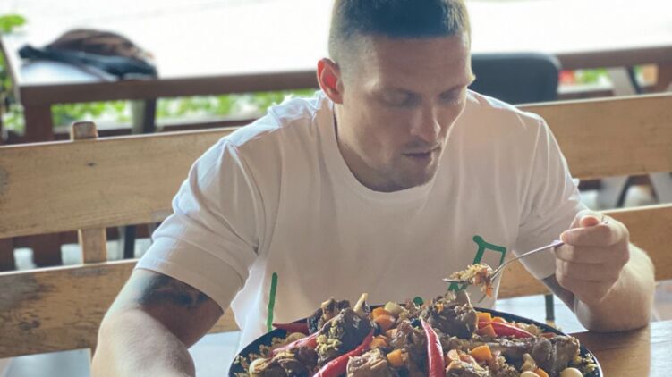 Усик показал, как готовится к поединку Джошуа при помощи гигантской порции плова. Фото