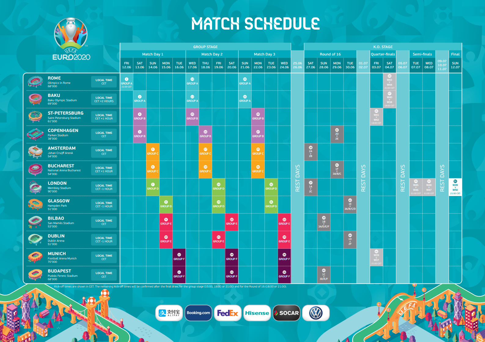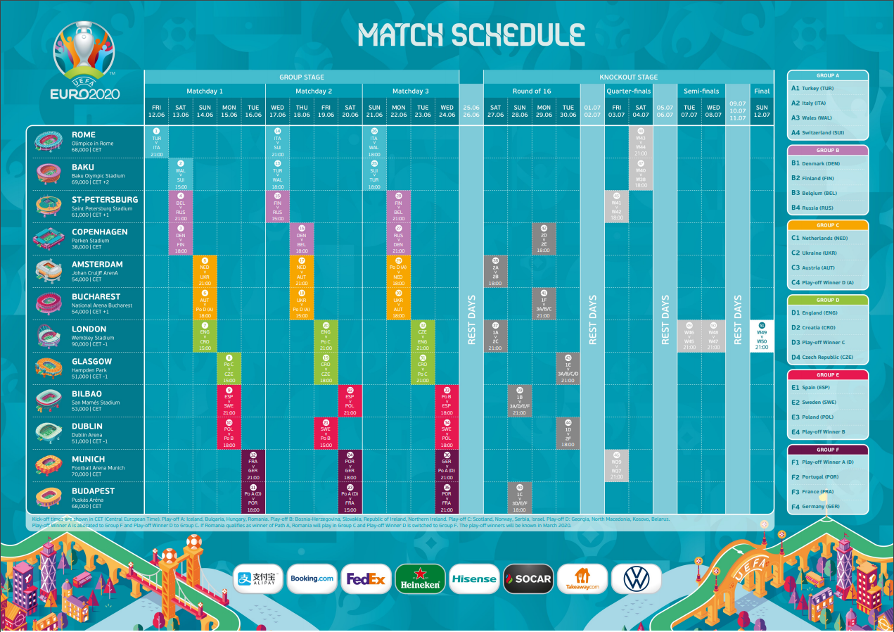 Игры нашей группы "С" пройдут в Нидерландах (г. Амстердам - Johan Cruijff Arenа) и Румынии (г. Бухарест - National Arena). Даты - 14,18 и 22 июня. По 2 игры в группе в каждый из игровых дней.