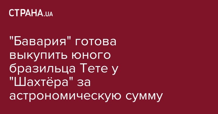 Немецкий клуб "Бавария" готова заплатить за 19-летнего футболиста Тете 50 млн евро, которую раньше озвучил агент юного бразильца, который выступает за донецкий "Шахтёр".