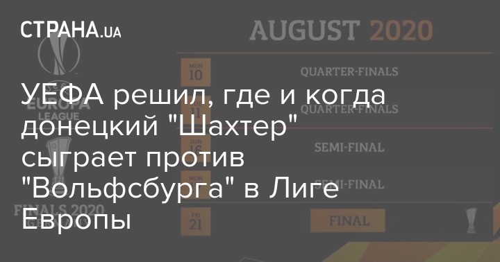 Вторая игра между донецким "Шахтером" и немецким "Вольфсбургом" в 1/8 финала Лиги Европы назначена на среду, 5 августа, в Киеве на НСК "Олимпийский". Она пройдет при пустых трибунах из-за карантинных ограничений.