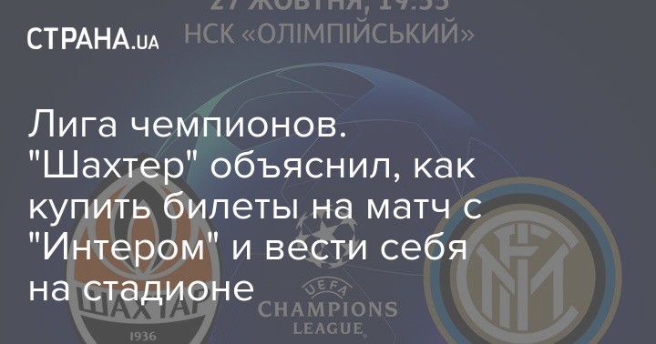 Минздрав Украины разрешил донецкому "Шахтеру" провести 27 октября матч Лиги чемпионов против миланского "Интера" со зрителями. НСК "Олимпийский" примет 15% болельщиков от своей вместимости.