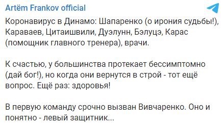 Об этом сообщил главный редактор журнала "Футбол" Артем Франков в своем телеграм-канале.