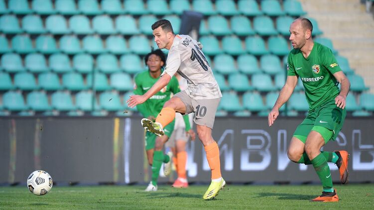Нападающий "горняков" Жуниор Мораес оформил дубль на стадионе им. А. Бутовского на 42-й и 62-й минутах поединка.