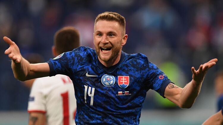 Гол Шкриньяра стал победным для сборной Словакии в матче с командой Польши на Евро-2020, фото: Twitter/euro2020