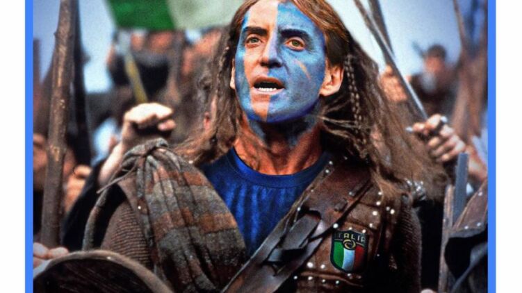 Выступающая за независимость Шотландии местная газета The National в канун финала Евро-2020, где сыграют сборные Италии и Англии, разместила на обложке фото тренера сборной гостей Роберто Манчини в образе Уильяма Уоллеса - борца за независимость Шотландии, которого в 1995 году сыграл Мел Гибсон в фильме "Храброе сердце".