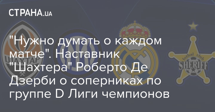 "Нужно думать о каждом матче". Наставник "Шахтера" Роберто Де Дзерби о соперниках по группе D Лиги чемпионов
