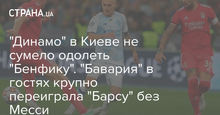 "Динамо" в Киеве не сумело одолеть "Бенфику". "Бавария" в гостях крупно переиграла "Барсу" без Месси